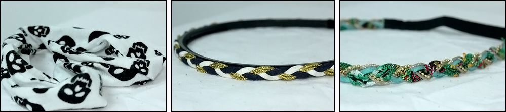 Ce n'est franchement pas mon magasin préféré, pour tout dire je trouve qu'il fait très ado en crise avec ses bracelets "YOLO" et ses sacs One Direction, mais... on y trouve de chouettes accessoires pour les cheveux. Je n'y suis pas allée avec un but bien précis, mais j'ai déniché un petit accessoires en tissu blanc avec des têtes de mort, à l'intérieur se trouve une espèce de fil de fer pour le rendre rigide et l'enrouler autour de chignons ou autre, je ferais peut-être un tutoriel de différentes coiffures. En passant en caisse, la vendeuse m'a bien eue en me disant que pour deux accessoires de coiffure achetés, le troisième était offert, quand on me dit ça, forcément... C'est mon Chéri qui m'a aidée à choisir les deux autres, un serre-tête et un headband tous les deux tressés comme j'aime !